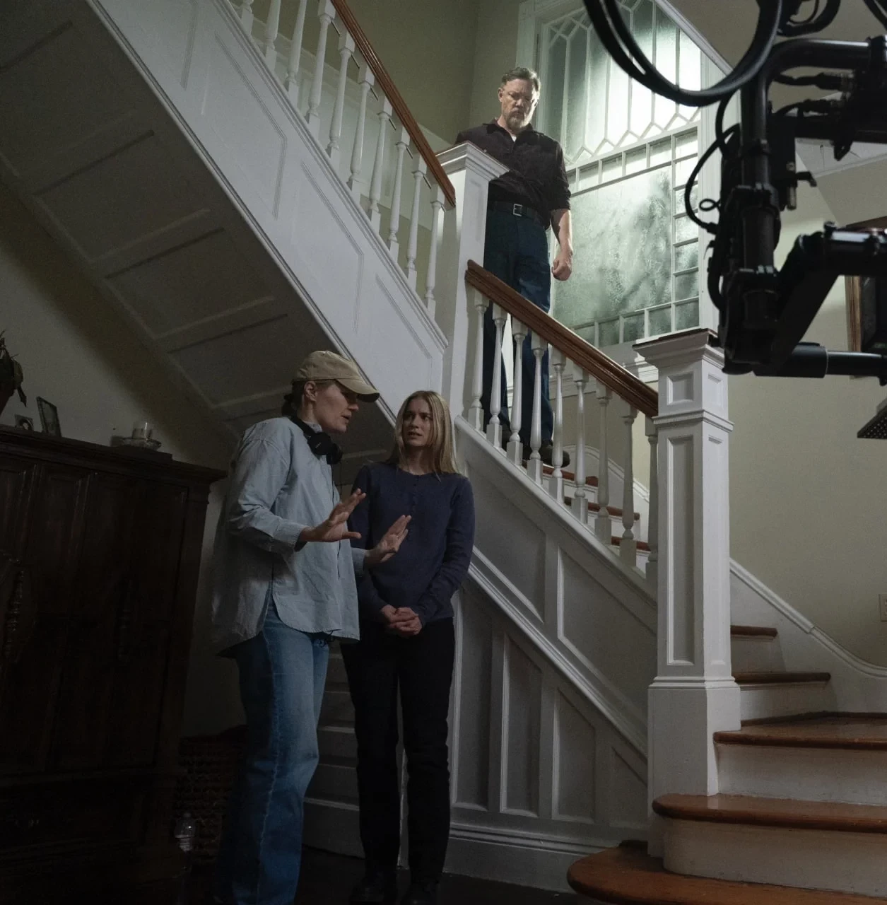 На кадре можно увидеть режиссёра картины Эмму Тамми («Обитель страха»), а ещё — Мэттью Лилларда («Крик») и Элизабет Лэйл («Ты»), которые вернулись к ролям Уильяма Афтона и Ванессы.
